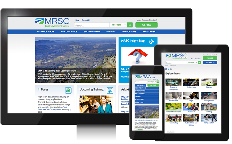 Mrsc.org is now a responsive website built on a robust content model and a flexible content management platform. Content can be re-used and displayed in a variety of formats, lifting the burden of a MRSC’s research and writing staff from the more menial tasks of web content management so they can focus on their real mission: helping governments govern better.